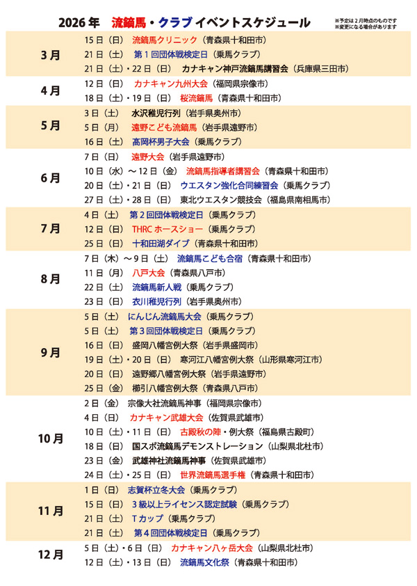 ※(4/8追記)2026年の「東北地区乗馬倶楽部振興会地区乗馬大会・東北活動地域指導者競技会」は、会期:6月19日~21日(会場:会場南相馬馬事公苑)となり、今年度の参加は見送ることになりました。ご了承ください。