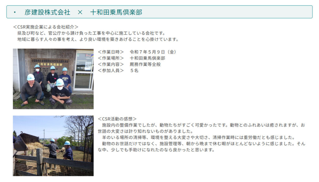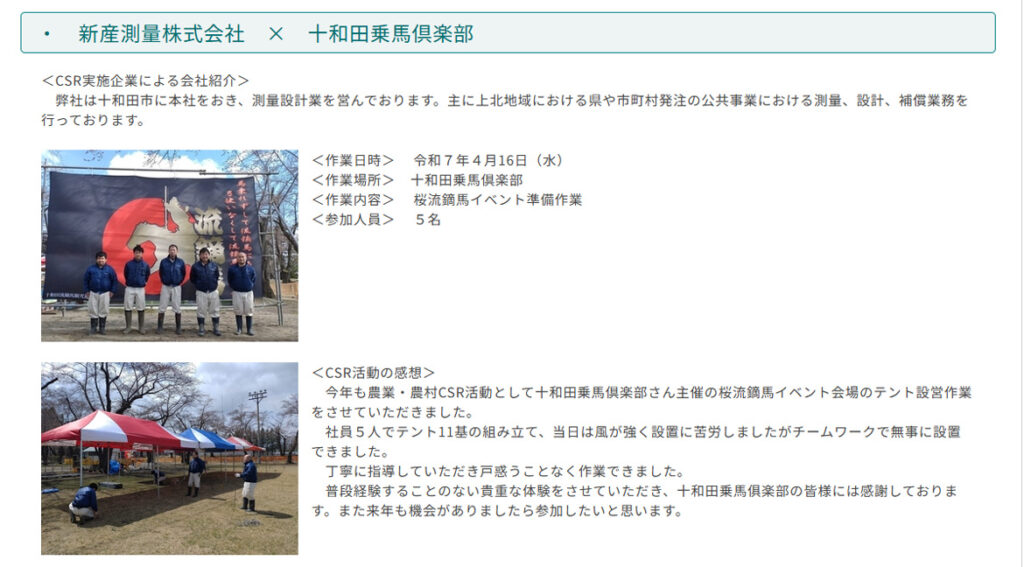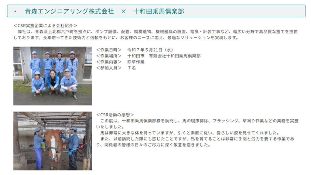 以下は、受入企業登録をしている「あおもり農業・農村支援CSR活動」の実施報告です
