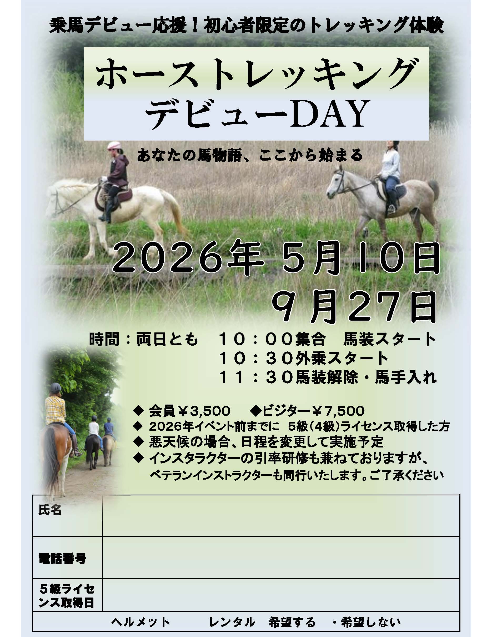 乗馬デビュー応援!初心者(5級・4級)限定のトレッキング体験会です