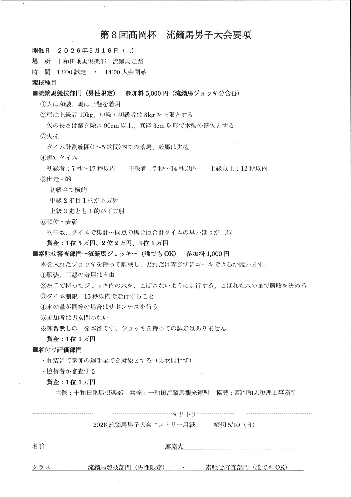 ■流鏑馬競技部門(男性限定) 参加料5,000円(流鏑馬ジョッキ分含む)